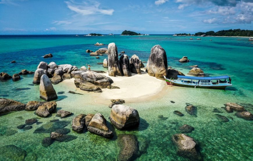 Belitung (or Billiton) is a stunning, tranquil island east of Sumatra, Indonesia, renowned for its crystal-clear turquoise waters, brilliant white-sand beaches, and iconic large granite boulder formations. As a UNESCO Global Geopark, it offers unique landscapes, snorkeling, island hopping (especially to Lengkuas Island), and fresh seafood.Belitung is an ideal destination for nature lovers, beach enthusiasts, and those looking to escape crowded tourist spots.
