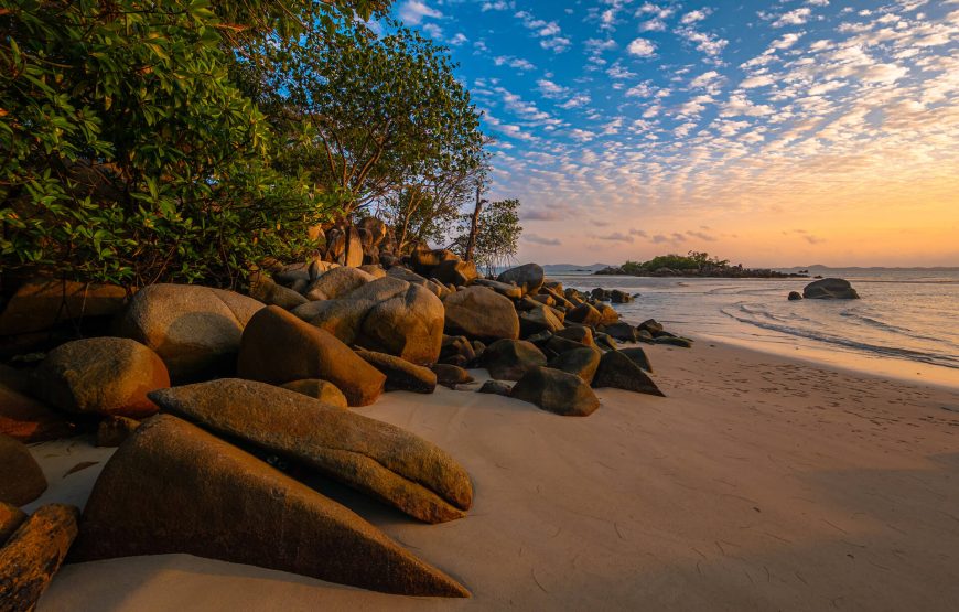 After a delight breakfast at the hotel, we will go island-hopping! Before we begin, you will take a traditional boat from Tanjung Kelayang Beach, then head to Lengkuas Island, where there is a Dutch heritage lighthouse that has stood since 1882. You can see the beautiful sea and the expanse of rocks from this 18-story building. Next, we will go to the snorkeling spot to enjoy the beauty of the underwater world. Continue to Kelayang Island for lunch and a short break. Then, visit Pasir Island, where there are many starfish (the existence of this island depends on the condition of the tide), and Batu Berlayar Island, which is in the middle of the sea with a granite rock arrangement that resembles a ship’s sail. Afterwards, we go back to Tanjung Kelayang Beach and then transfer you back to the hotel.